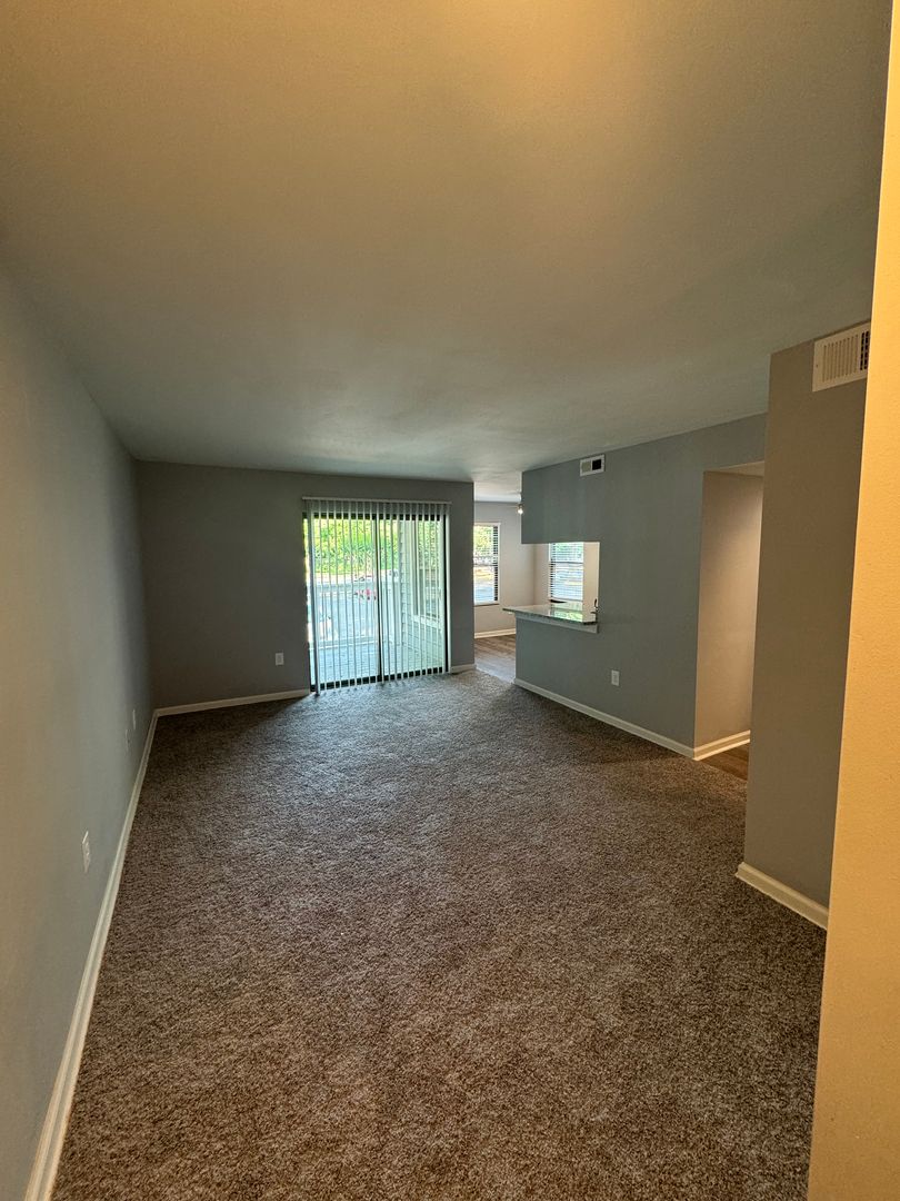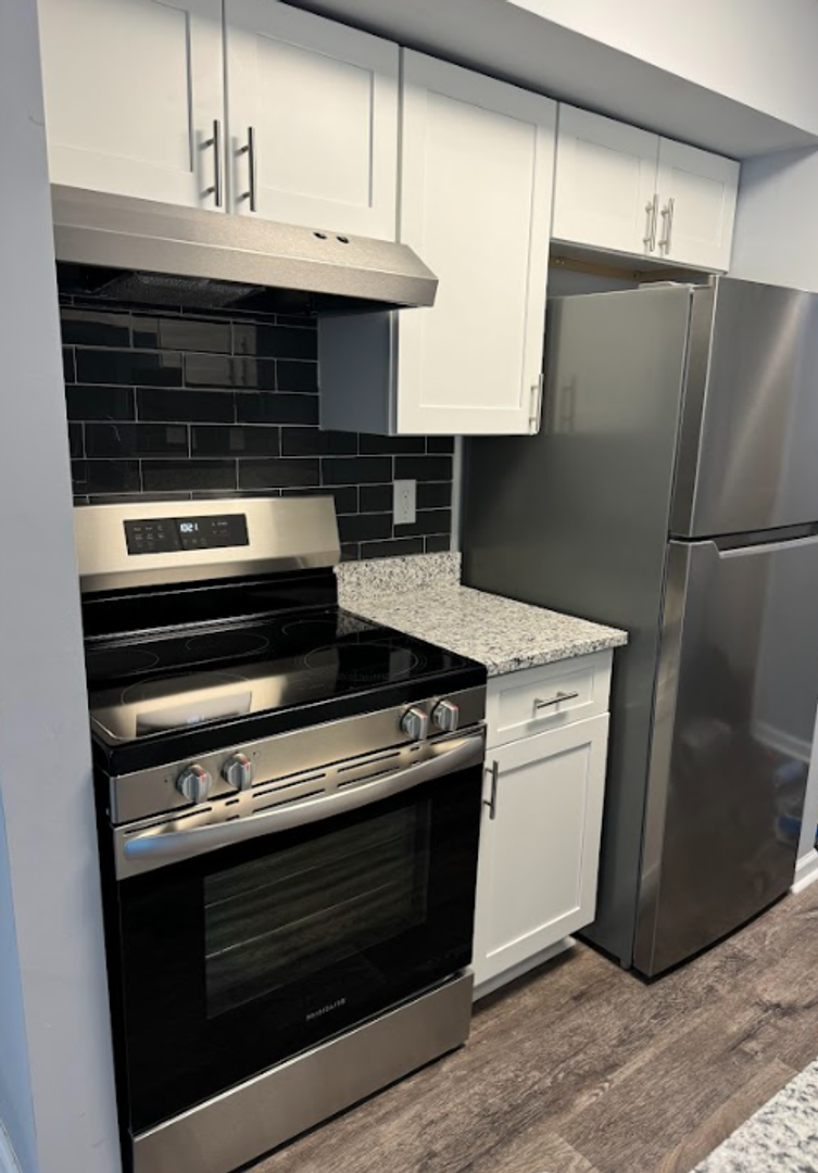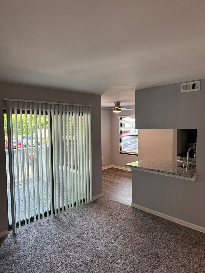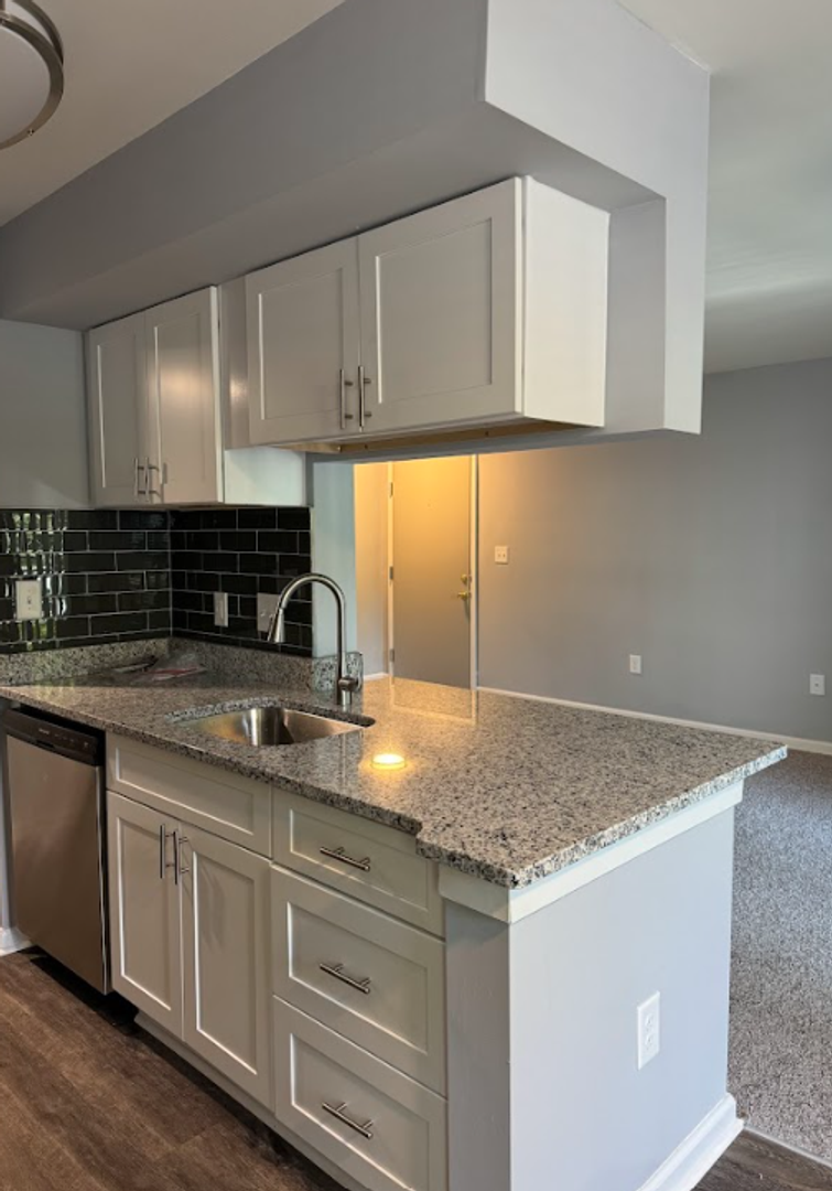 Our 1BD/1BA home has 642 square feet of heated space. The kitchen cabinetry provides amply storage of all your needs. The kitchen/dining room combination comes furnished with a range, frost-free refrigerator, garbage disposal and stainless steel sink. The master bedroom has a large walk-in closet with storage shelves. The living room and bedroom have large, light-filled windows. The walls are painted off white for easy matching. The floors consist of inlaid linoleum, and wall-to-wall carpeting.